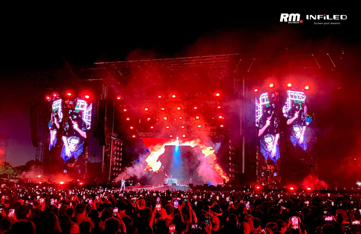 Per l’occasione, Gianpaolo Rizzo di MOD, il service che ha curato la fornitura della parte video dello show, ha deciso di affidarsi all’AR 3.9 Outdoor di Infiled , mettendo in piedi una struttura robusta e imperiale di ben 600m².