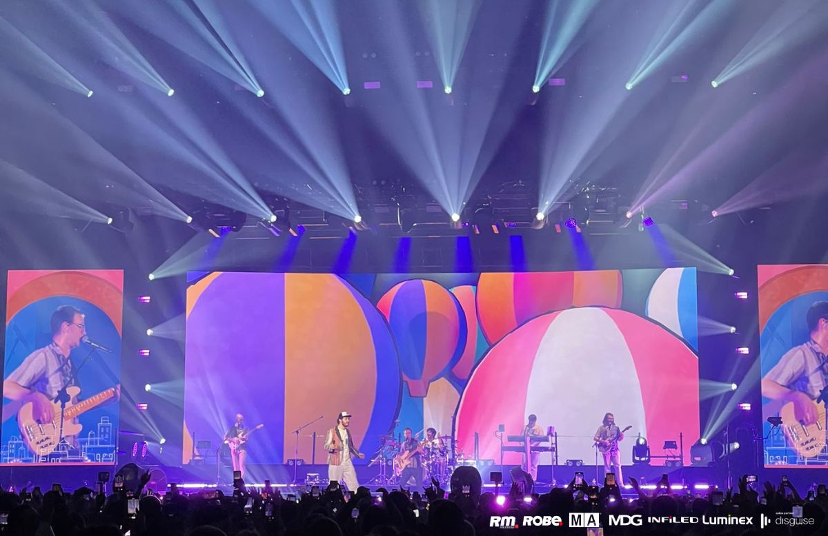 Ma qual è stato il punto di partenza per questo spettacolo luminoso? Lorenzo ci ha rivelato che tutto è iniziato con un’approfondita pianificazione su Vectorworks, insieme al collega Andrea Carlotto e al direttore tecnico James Narduzzo per creare un rig che funzionasse sia come effettistica sia come illuminazione degli elementi. L’obiettivo era creare un design che non solo illuminasse il palco, ma che mettesse in risalto ogni membro della band, dando vita a momenti unici per ognuno di loro. Il risultato è una combinazione di luci, effetti visivi e movimenti scenografici che abbracciano e valorizzano gli artisti, creando un’esperienza coinvolgente per il pubblico.
